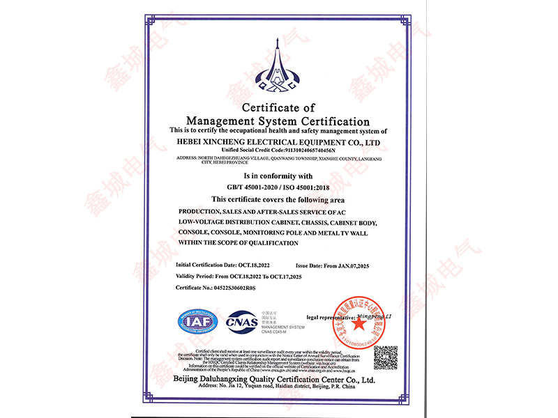 45001職業(yè)健康管理體系認(rèn)證證書