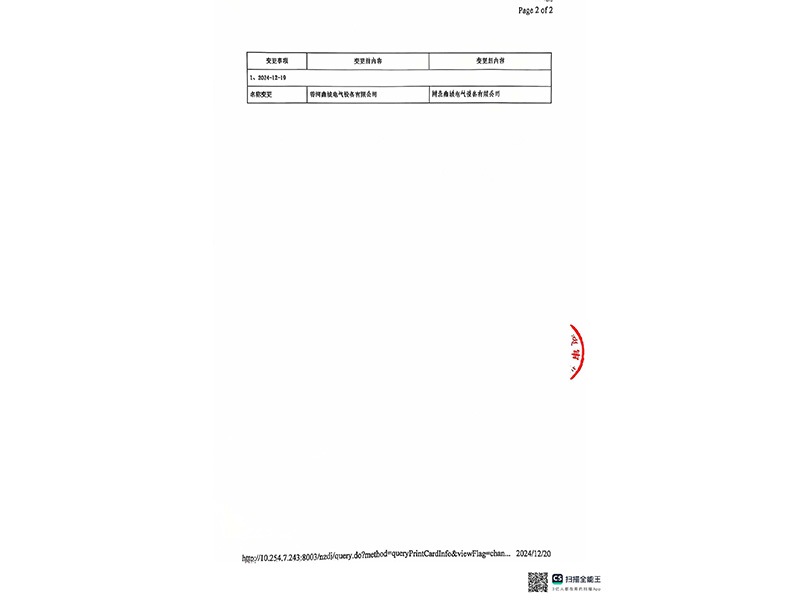 原“香河鑫城電氣設(shè)備有限公司”因發(fā)展需要,從2024年12月19日起變更登記為“河北鑫城電氣設(shè)備有限公司”